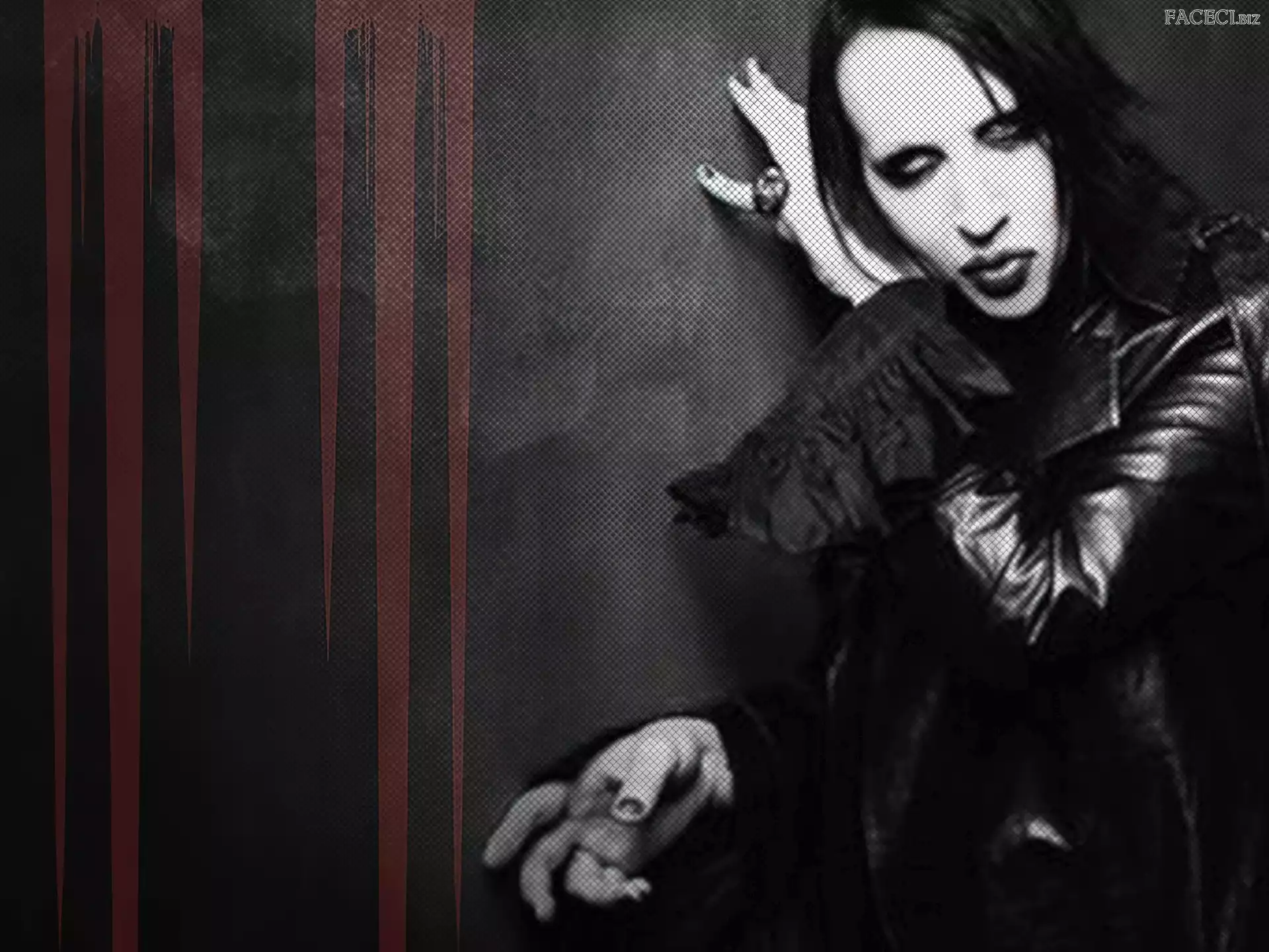 Brian Hugh Warner Twarz, Marilyn Manson, Czarna Brian Hugh Warner, Marilyn Manson Marilyn Manson Rękawiczka, Czarna, Język, Marilyn Manson, Zęby Brian Hugh Warner Makijaż, Marilyn Manson, Ostry Makijaż, Marilyn Manson, Sygnet Gwiazda, Marilyn Manson, Czerwona Kanapa, Mężczyzna, Marilyn Manson. Makijaż Marilyn Manson Okno, Marilyn Manson Marilyn Manson, Okulary, Usta, Czerwone Marynarka, Marilyn Manson